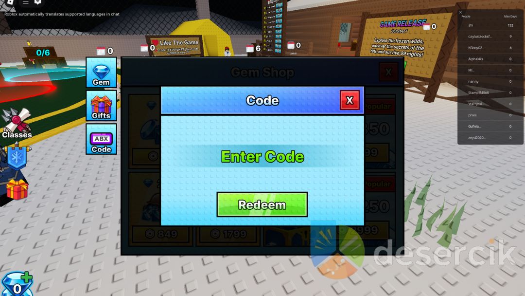 99 Nights in the Arctic to przyjemny survival na Robloxie: twoim celem jest przetrwać sto dni w lodowej scenerii, a od tego, jaką klasę wybierzesz i jakie ulepszenia zdobędziesz, zależy twoja szansa na powodzenie. Gemy to waluta, która naprawdę robi różnicę – kupisz za nie nowe klasy, przydatne ulepszenia i skrócisz sobie drogę od porażki do przetrwania. Niestety zbieranie Gemów potrafi być mozolne, więc twórcy czasem wrzucają kody, które dają darmowe nagrody. Ten tekst wyjaśni krok po kroku, skąd brać kody, jak je wymieniać i jak mądrze wydawać zdobyte Gemy.
