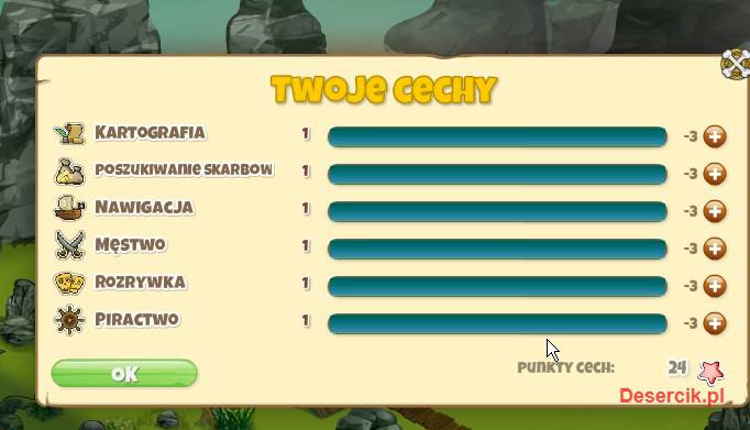 Monety w grze Wyspa Piratów to klucz do sukcesu i najszybciej je zdobywamy wykonując kolejne zadania, ale również regularnie je pozyskujemy z różnych budynków usługowych. Oczywiście możemy wzbogacić się także na handlu, ale do tego trzeba mieć już pewną wprawę, ale jedno jest pewne, musicie zapamiętać, że każda nowa chałupa na wyspie to większe dochody w złocie.