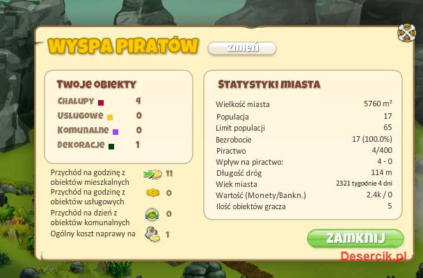 Już dziś możesz posiadać własną Wyspę Piratów na portalu Nasza Klasa, wystarczy zagrać w grę o tym samym tytule – Wyspa Piratów i rozpocznie się zabudowywanie własnego kawałka ziemi jaki do naszej dyspozycji oddało studio gier Baadgames (Nasze Miasto). Na początek zajmijmy się codziennymi zadaniami, gdyż to one będą głównym źródłem rozbudowy całego miasta/wioski, którą w miarę czasu będzie poszerzać o nowe ziemie, ale do tego jeszcze daleko, zacznijmy od rozbudowy części mieszkalnej, aby nasi piraci mieli gdzie wypić spokojnie rum i przespać się po ciężkim dniu. Aby im się przyjemniej mieszkało można gdzieniegdzie dorzucić parę dekoracji, ale i tak ważne są od samego początku budynki usługowe, które zarabiają dla nas cenne złoto – tak ważne do dalszego rozwoju w grze.