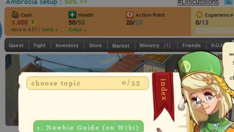 Może macie ochotę spróbować swoich sił w grze tekstowej na facebooku Ambrosia? Do najnowszych nie należy, ale mimo wszystko ma swoje zalety. Łączy w sobie cechy trzech różnych typów gier: strategii, społecznościowej oraz RPG. Jeśli chodzi o sam tutorial to nie ma wskazówek w postaci chmurek jak w innych grach, mamy po prostu odnośnik wskazujący interesujące nas informacje. Spokojnie można więc sobie przejrzeć dostępne funkcje.