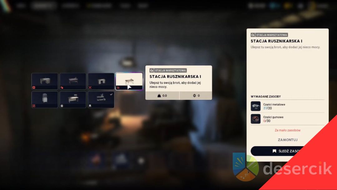Aby zacząć korzystać z Warsztatu Broni, musisz najpierw ukończyć misje wprowadzające w grze. Gdy to zrobisz, wchodzisz do Warsztatu, wybierasz odpowiednią zakładkę obok Koguta Złomka i instalujesz warsztat. Do jego stworzenia potrzebujesz: