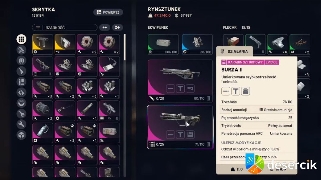 Burza to broń dla graczy, którzy uwielbiają tempo i chaos. Strzela gęsto, w szybkim rytmie, tworząc niemal „ścianę pocisków”. To broń idealna na krótkim dystansie, gdy wrogie drony atakują w falach i trzeba je topić szybko.