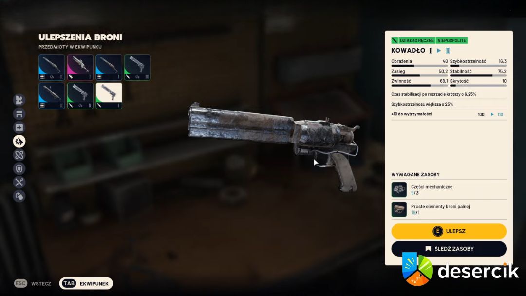 Jak sama nazwa wskazuje, Kowadło to broń dla tych, którzy lubią uderzać mocno i celnie. To heavy hitter – każdy strzał może zniszczyć sporo HP przeciwnika i łatwo „otwiera” pancerz. Jednak wymaga planowania i cierpliwości, bo jest wolna i nie wybacza błędów.