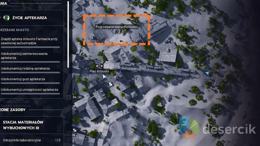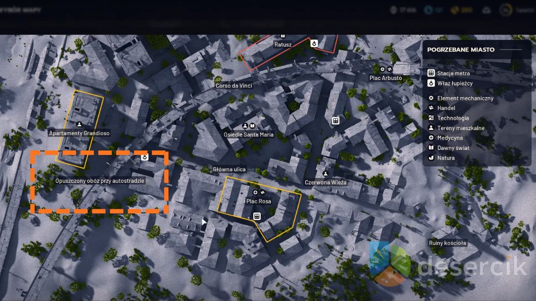 Pierwszy przystanek to Opuszczony Obóz przy Austostradzie w Pogrzebanym. Miejsce leży głęboko na południowym zachodzie mapy, mniej więcej obok Apartamenty Grandioso. Kiedy już tam dotrzesz, teren wydaje się martwy, ale szybko okazuje się, że ktoś coś tu zostawił.