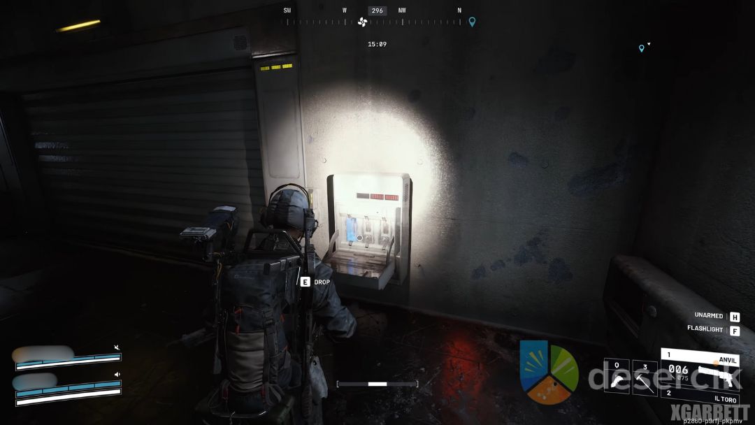 - Zaraz po zjeździe liną wejdź w pierwsze drzwi po prawej. Maszyna stoi obok drzwi, tuż pod żółtym graffiti.