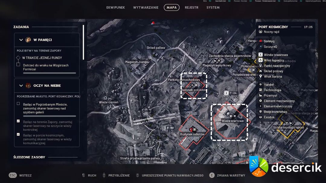 Wieża startowa – Port Kosmiczny – Wieża stoi w samym centrum mapy, a w dwóch pomieszczeniach znajdziesz serwery i maszyny, które mają spore szanse na Czujniki, szczególnie podczas Nocne Rajdy.