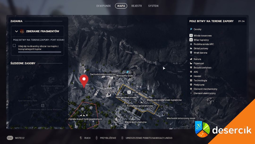 Gdy wejdziesz na Pole Bitwy na Terenie Zapory, rozejrzyj się w Grani Zwycięstwa – to górny, lewy fragment tej lokacji. W praktyce najlepiej celować w miejsce, gdzie łączą się dwie główne drogi, tuż nad Kompleksem Kopuł Hydroponicznych. Od wspomnianego kompleksu ruszamy na północ, samo miejsce docelowe znajdziemy pomiędzy Rubinową Rezydencją, a Halą generatorową.