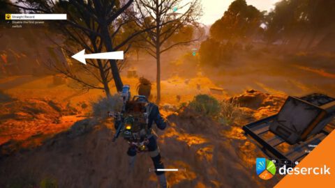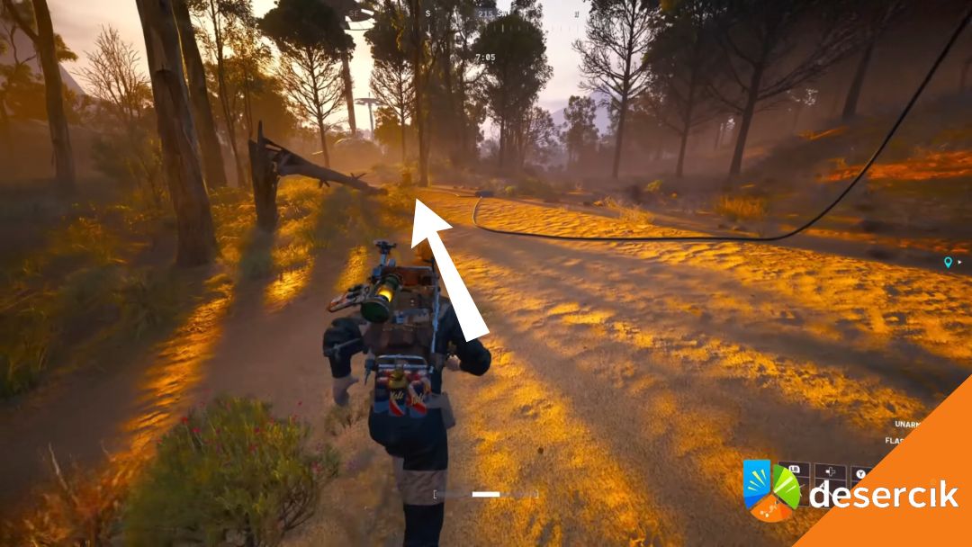 W pewnym momencie, idąc tą drogą, po prawej stronie zobaczysz ogromny stalowy słup. To właśnie pułapka EMP, którą musisz namierzyć. Znajduje się lekko na południowy zachód od Zachodniego zniszczonego mostu.