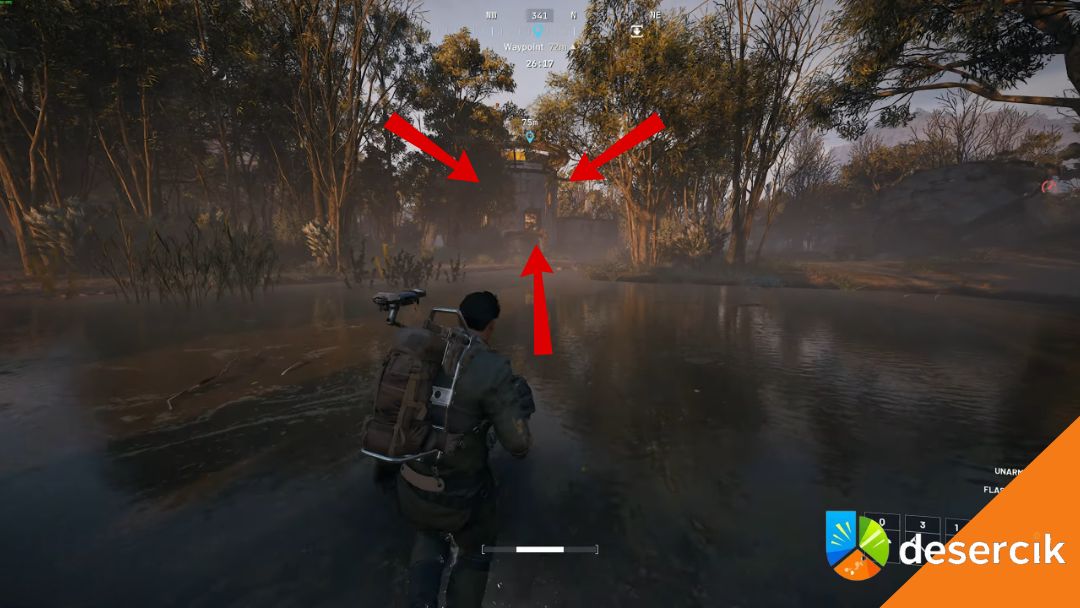 Kolejny punkt znajduje się w Południowym Posterunku Bagiennym, widocznym w dolnym lewym rogu mapy, również na terenie Pola Bitwy na Terenie Zapory.