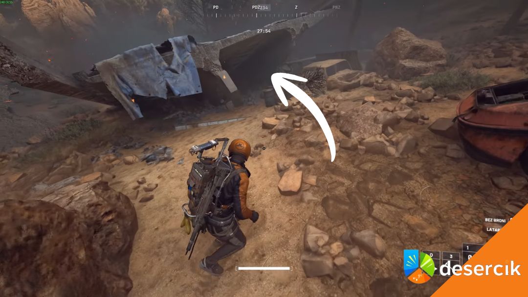 Najpierw rozglądaj się za grupą porzuconych samochodów i fragmentów autostrady, a potem szukaj miejsca z kilkoma zardzewiałymi beczkami i niebieskim namiotem z materiału powieszonym na gruzach – to właśnie tworzy prowizoryczny obóz.