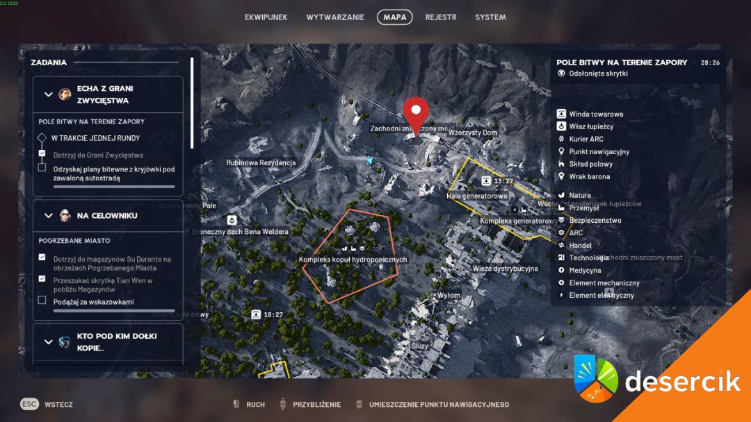 Po dotarciu tam zadanie zaktualizuje się i dostaniesz cel: znaleźć obóz Łupieżców na Grani Zwycięstwa. Wskazówka? Jest pod zniszczoną autostradą. W grze są dwa duże fragmenty zniszczonej drogi, ale chodzi konkretnie o Zachodni Zniszczony Most.