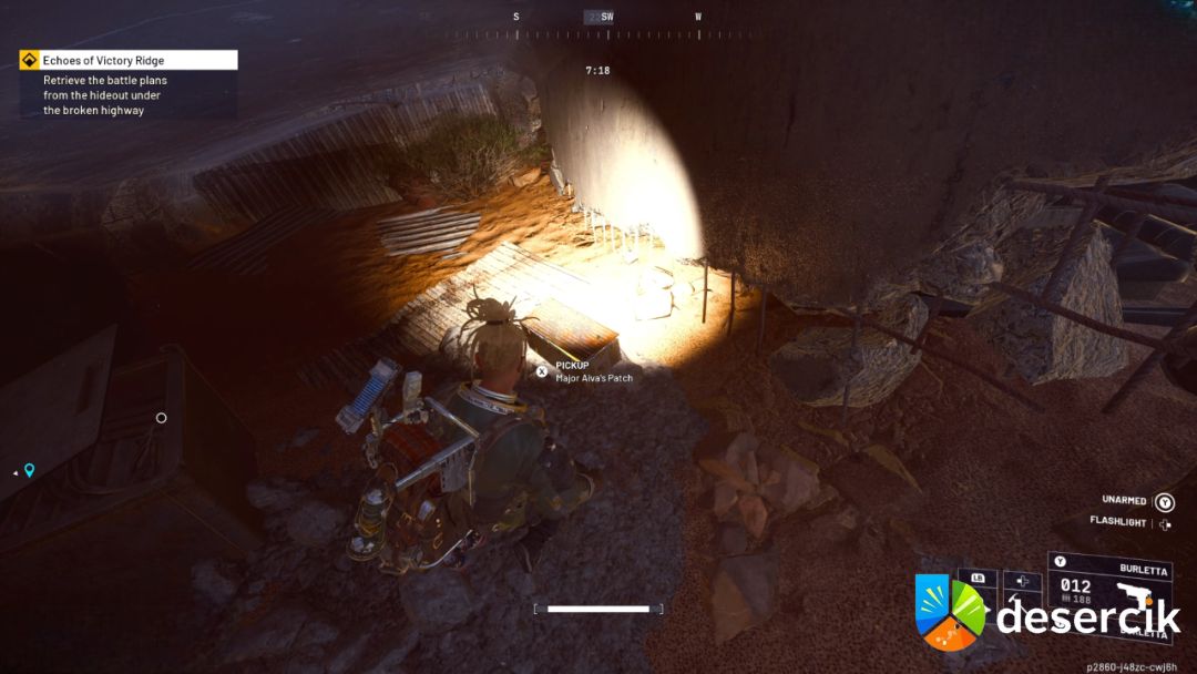 Przeczołgaj się pod nim, a na ziemi znajdziesz małą metalową skrzynkę, podobną do tych, które dostarcza się do Składu Polowego. Tym razem jednak pojawi się specjalna opcja interakcji. Po jej użyciu zdobędziesz trinket – Major Aiva’s Patch.