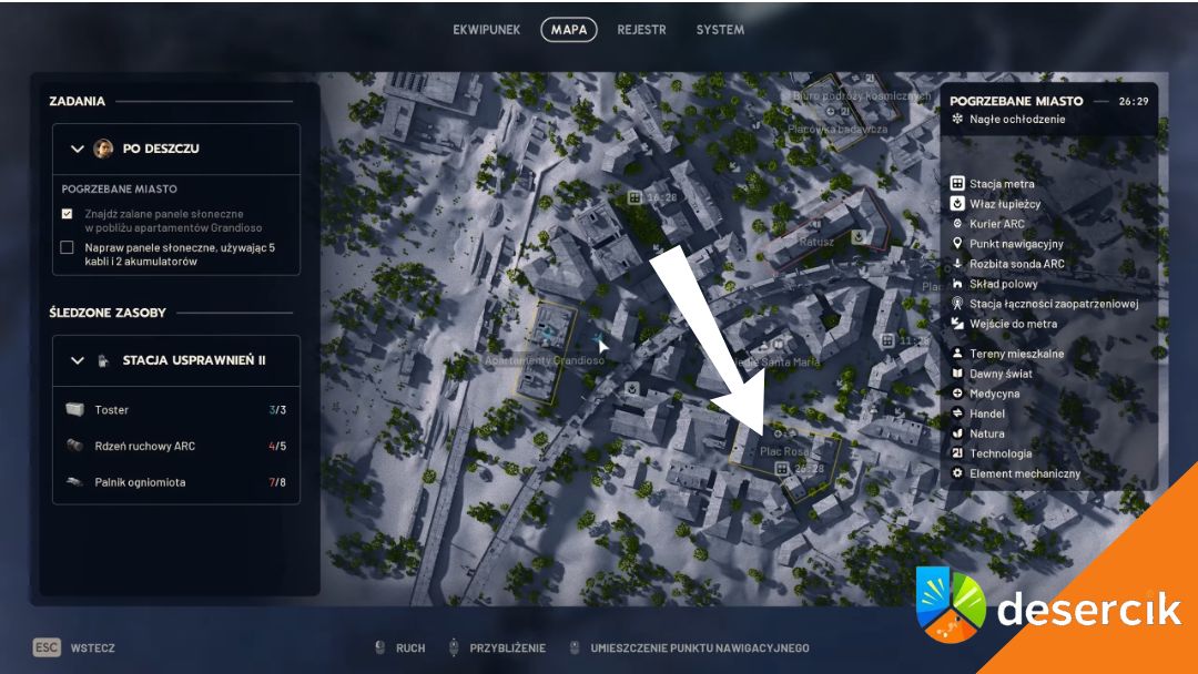 • Odnaleźć ekspres do kawy na Placu Rosa na mapie Pogrzebane Miasto, dokładniej w jego południowej części.