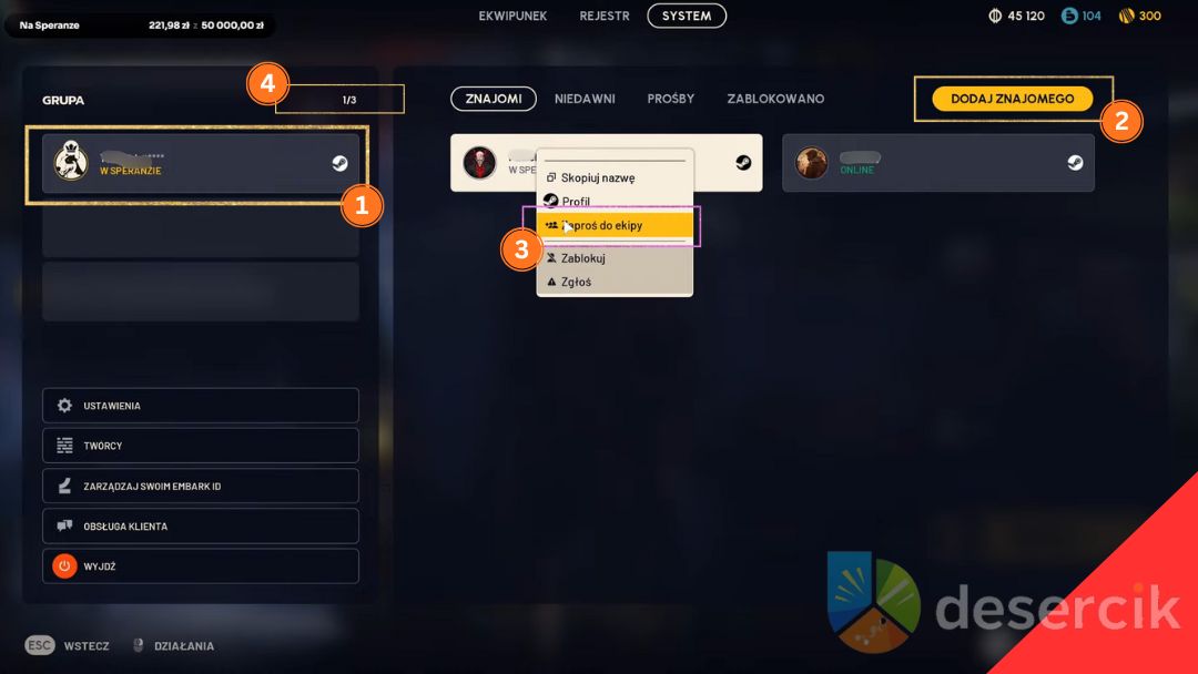 W głównym menu, nad opcją Uzupełnij oddział (5), znajdziesz symbol plusa. Możesz skorzystać najpierw z zaproszenia znajomego (2), aby później móc go zapraszać do ekipy przed walką (3).