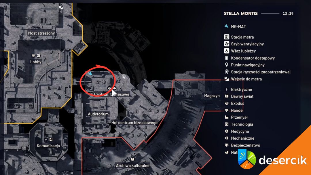 Po zakończeniu pierwszego etapu idziesz prosto w głąb centrum biznesowego (w audytorium), a następnie skręcasz w prawo. Tam czeka drugi komputer, z którym trzeba wejść w interakcję. Jedno kliknięcie i Lance dostaje kolejne dane.