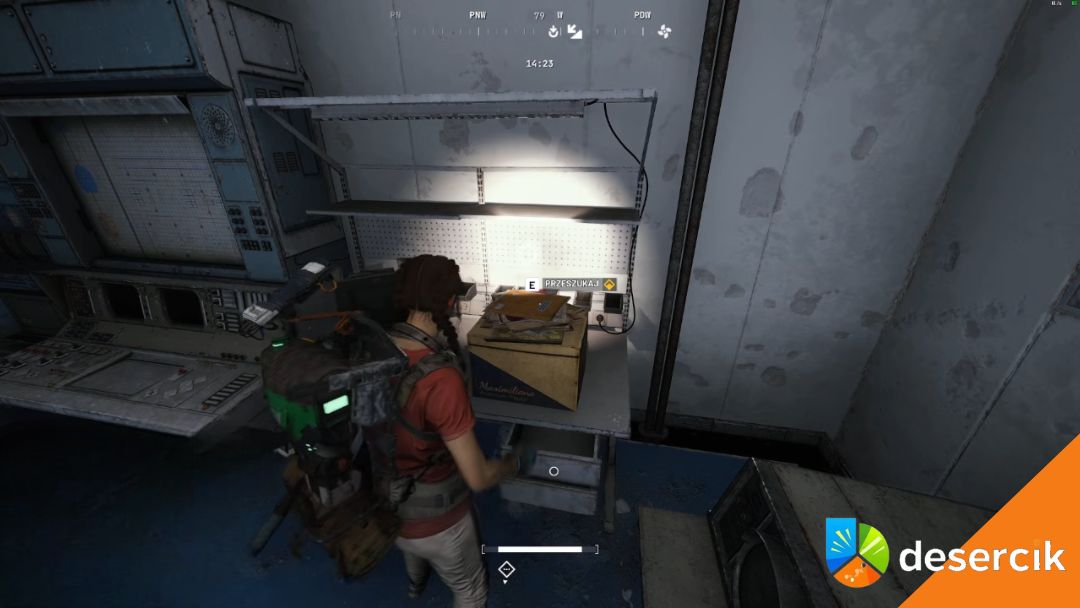 Ostatni etap prowadzi do Warsztaty w montażowni. Musisz wejść na górę po drabinie obok włazu i przeszukać pudełko po lewej stronie w pokoju powyżej. To kończy zadanie, ale… czasami przeszukanie pudełka resetuje animację i cel nie zostaje zaliczony.