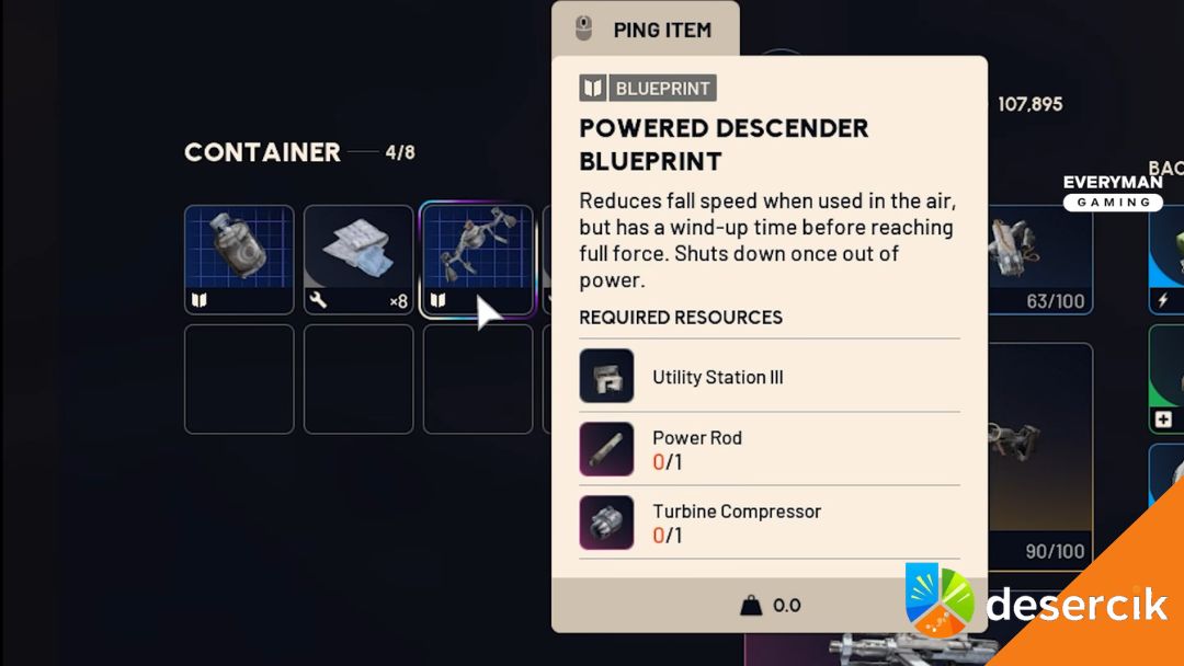Trzeba pamiętać, że sam blueprint nie wystarczy. Aby stworzyć Opadacz Elektryczny, konieczne jest ulepszenie Stacji przedmiotów użytkowych do poziomu 3. Bez tego crafting pozostaje zablokowany, nawet jeśli masz wszystkie potrzebne materiały.