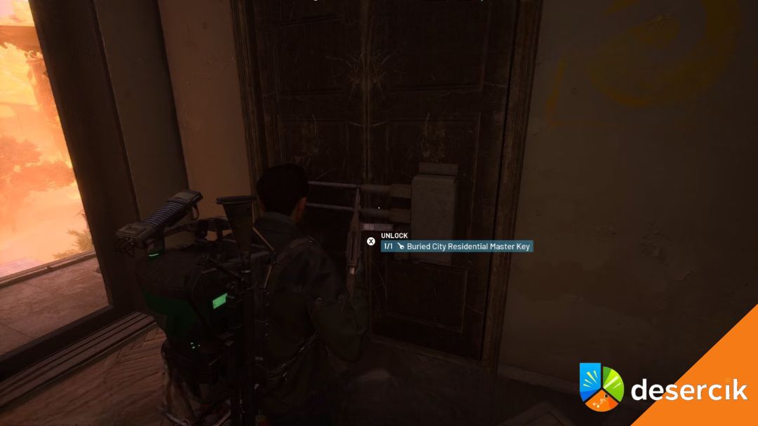 - Wchodząc do jedynego pokoju przy korytarzu, użyj klucza uniwersalnego do mieszkań w Pogrzebanym Mieście.