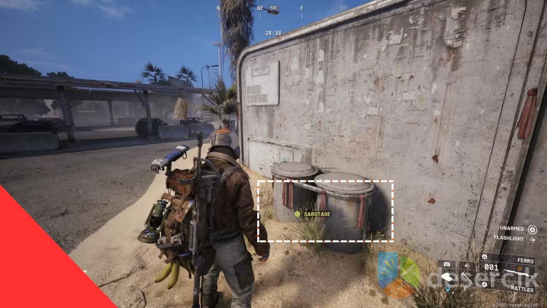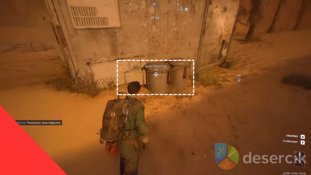 Kiedy już wejdziesz na teren stacji, zacznij rozglądać się za cylindrycznymi pojemnikami (coś jak kubły na śmieci z amerykańskich filmów) ustawionych pod ścianą. W okolicy są dwa podobne zestawy, stoją niedaleko siebie, ale tylko jeden z nich jest powiązany z zadaniem.