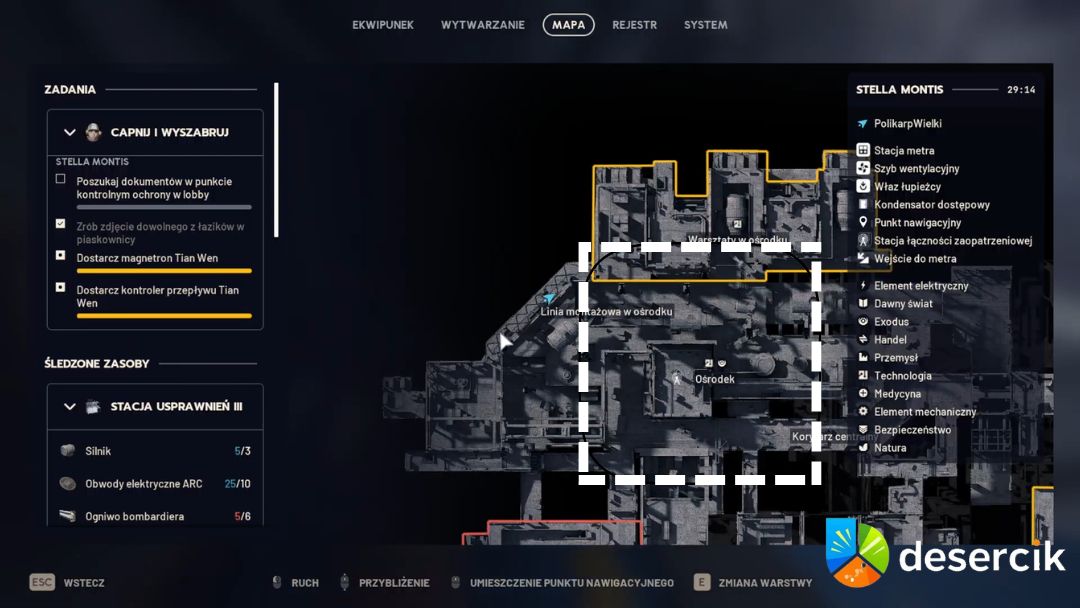 Najlepsze miejsce do polowania to Stella Montis, a konkretniej jej sekcje oznaczone jako obszary Exodus – Assembly oraz Business Center. Podczas biegania po tych lokacjach wypatruj czerwonych kontenerów przypominających skrzynki pocztowe, które często stoją w korytarzach i wnętrzach budynków. Mają naprawdę solidną szansę na wyrzucenie Licznik Geigera, więc warto zajrzeć do każdej jednej, nawet jeśli wygląda niepozornie.