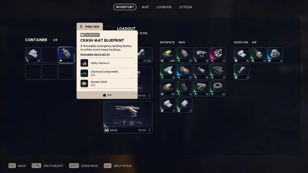 Po zdobyciu blueprintu trzeba mieć odpowiednią stację. Wymagana jest Stacja Użyteczności na poziomie 2. Po jej odblokowaniu crafting jest prosty. Do stworzenia Maty Amortyzującej potrzebne są tylko dwa materiały: części elektryczne oraz Wytrzymała Tkanina.