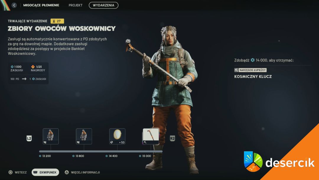 | Nagroda 25 | 15 000 | Klucz Kosmiczny (skórka narzędzia Raidera) |