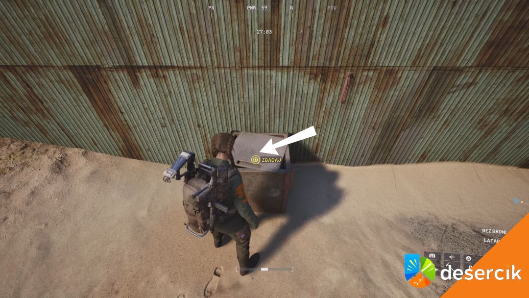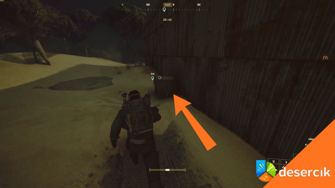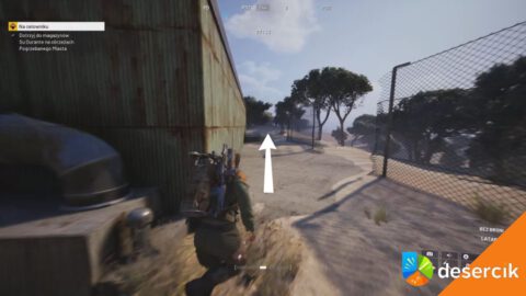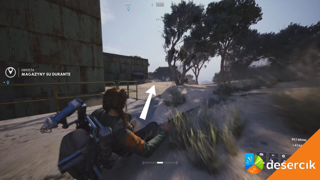 Po znalezieniu skrytki czas odkryć kolejny trop. W tej części misji musisz zlokalizować ślady na piasku, które prowadzą dalej od magazynu. Są one widoczne w okolicy, tuż przy miejscu, gdzie znalazłeś skrzynię. Ślady prowadzą w stronę zarośli przy zniszczonym ogrodzeniu.