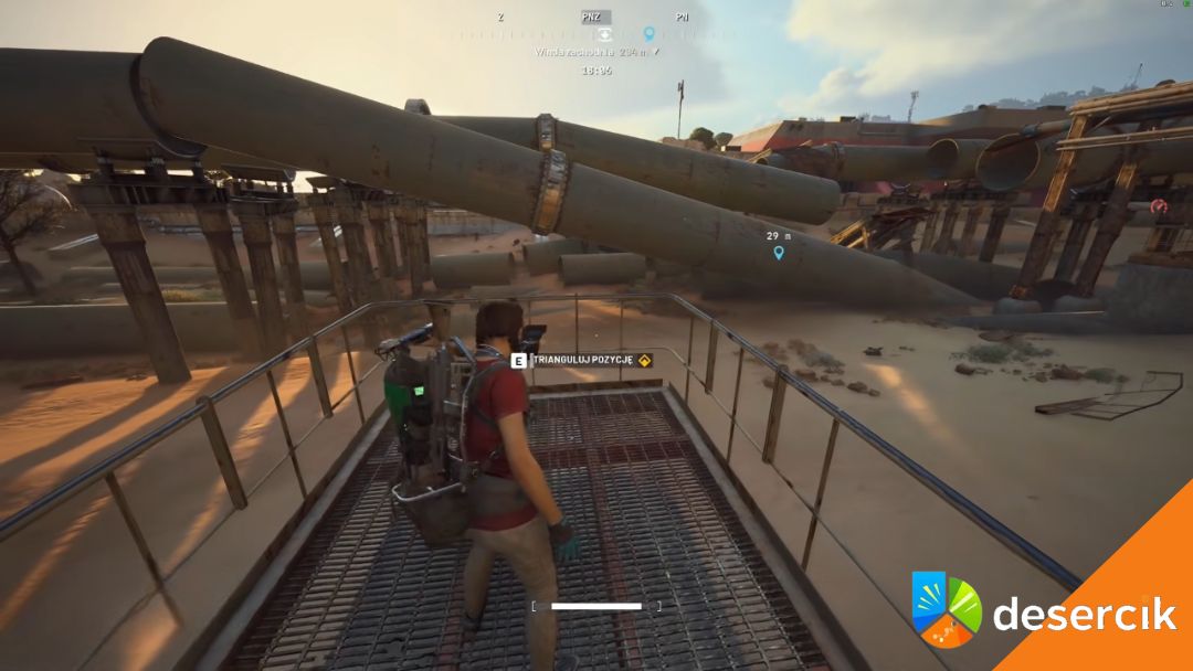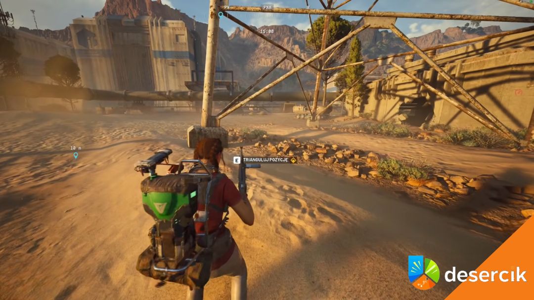 Gdy znajdziesz się we właściwym miejscu, znów pojawi się prompt do triangulacji. Aktywujesz go i ruszasz dalej. Na tym etapie nadal raczej unikasz walki – to otwarta przestrzeń, więc łatwo zostać zauważonym.