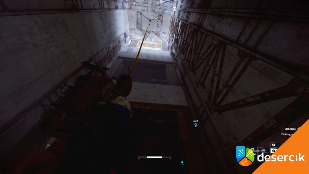 Po włączeniu prądu czas na wspinaczkę na dach. Skorzystaj z pobliskiej tyrolki (zipline), aby szybko dotrzeć na górę.