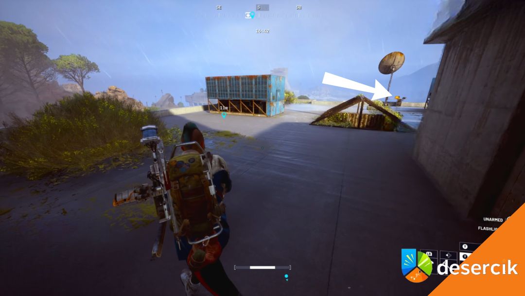 Gdy znajdziesz się na dachu, kieruj się do żółtego terminala i włącz antenę, wchodząc w interakcję z konsolą.