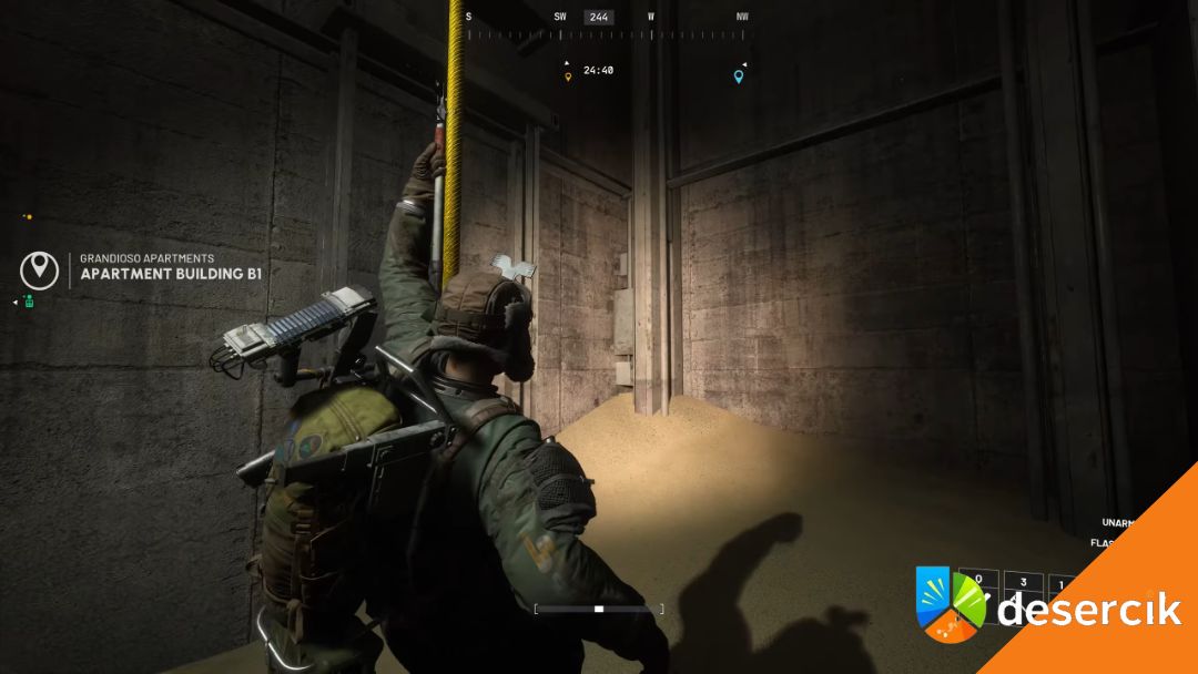 Najprościej wejść do budynku przez otwarte okno na niższych piętrach po stronie południowej, a następnie idź w kierunku środka pomieszczeń, żeby znaleźć schody lub zipline prowadzący na dach.