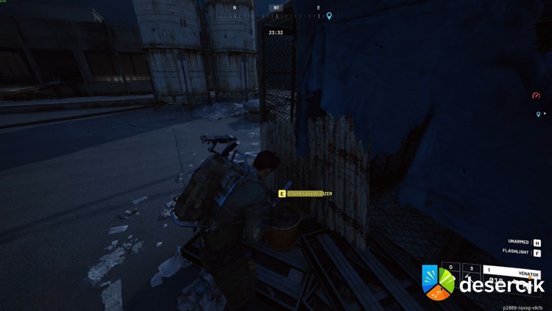 Przejdź przez mały most na północną stronę dachu, gdzie znajdziesz dwa doniczki stojące na palecie przy krawędzi, za dwoma klatkami. Wejdź w interakcję z doniczkami, aby zdobyć potrzebny nawóz, po czym możesz zejść na niższe piętro schodami lub zipline’em i opuścić budynek od północnej strony.