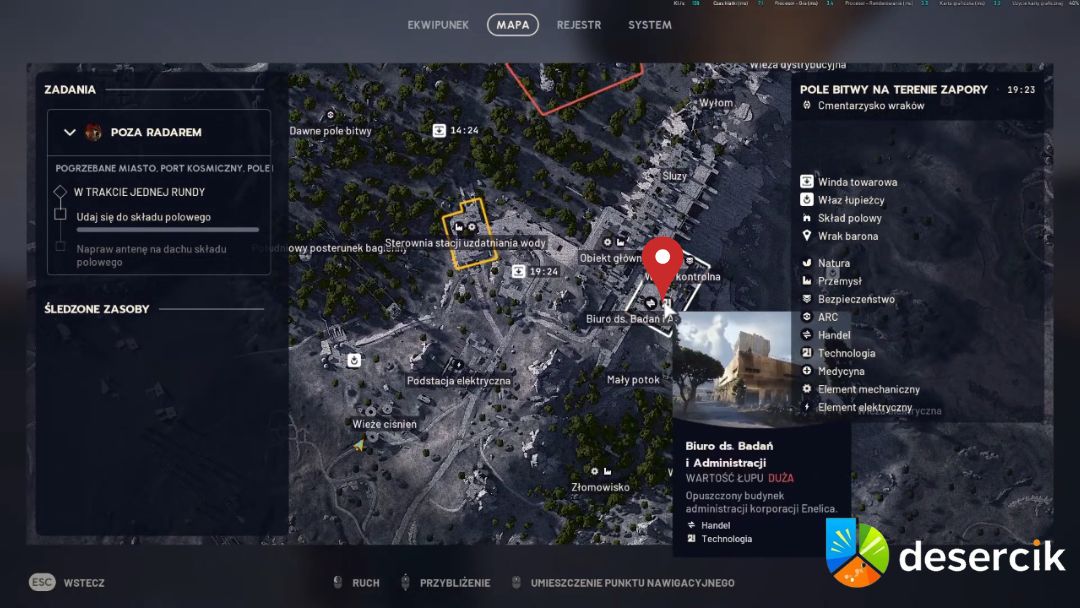Warto też zaglądać do miejsc z lepszym lootem – np. w Biurze ds. Badań i Administracji na mapie Pole Bitwy Na Terenie Zapory zdarzało się trafić Obrożę dla Psa kilka razy, mimo że teoretycznie nie jest to strefa mieszkalna.
