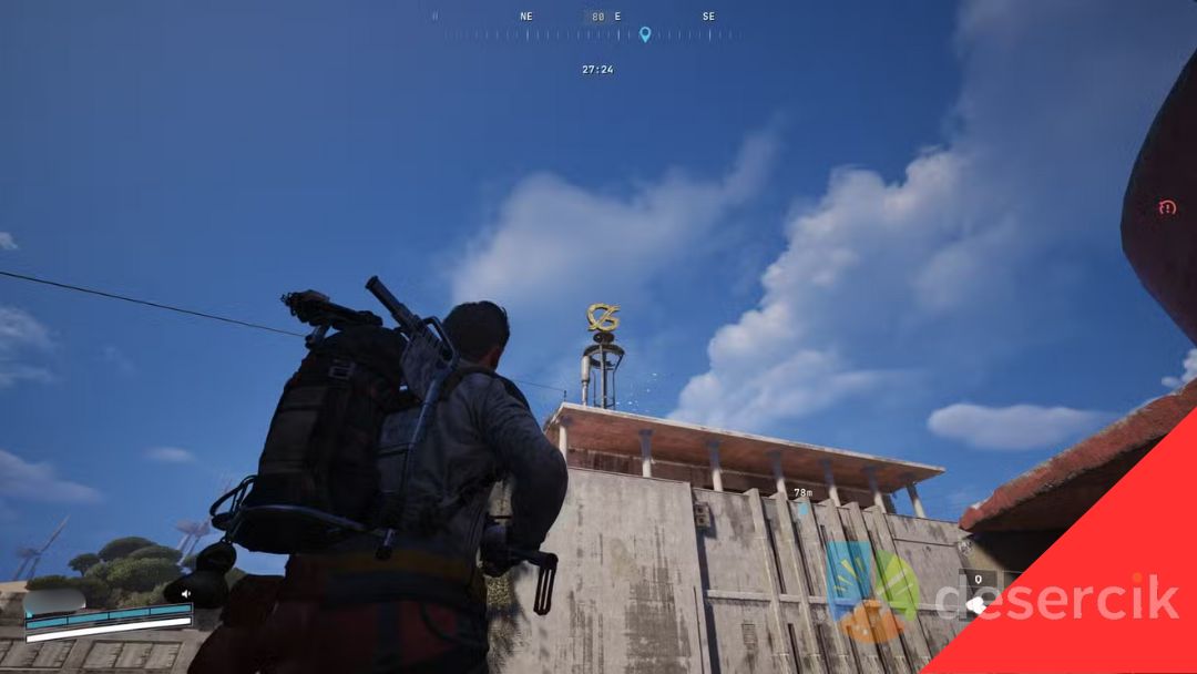 Aby zamontować LIDAR: najpierw przemieść się po dachu, unikając ARCs i wrogów. Następnie podejdź do słupa wsparcia z wielką literą „G”, który jest centralnym punktem oznaczenia. Aby dotrzeć na górę, będziesz potrzebować zipline’u – możesz użyć tego, który zapewniła Shani podczas misji, albo znaleźć / lootować inny.