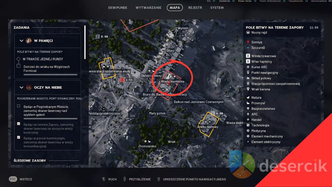 Kolejny LIDAR znajdziesz w Pogrzebanym mieście, nad Szyldem Galerii, czyli na dachu charakterystycznego budynku Galeria. To miejsce jest również często odwiedzane przez innych graczy, więc czeka Cię trochę skradania się i planowania ruchów. Podejdź do sprawy ostrożnie – ARCi mogą patrolować teren, a inni gracze często czyhają, żeby przejąć kontrolę nad tym punktem.