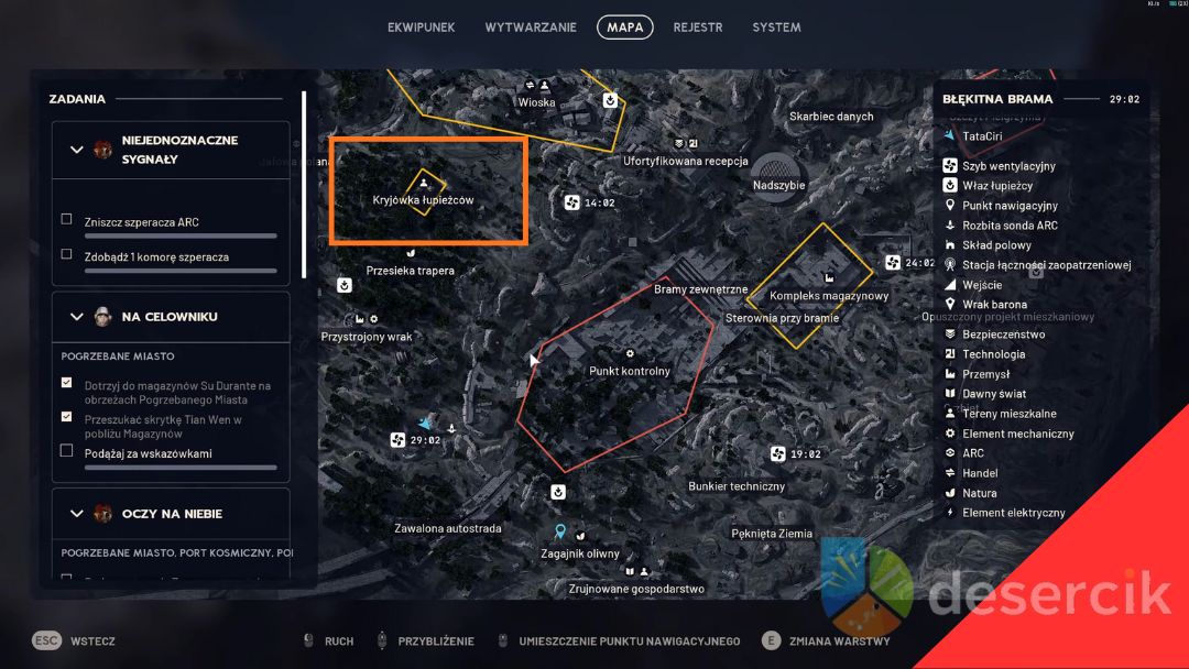 - Błękitna Brama (Blue Gate): warto odwiedzić Raider’s Refuge w lesie lub pobliskie magazyny. W tych miejscach często można natknąć się na patrolującego Bombardiera, który pilnuje skrzyń i wraków innych ARCs.
