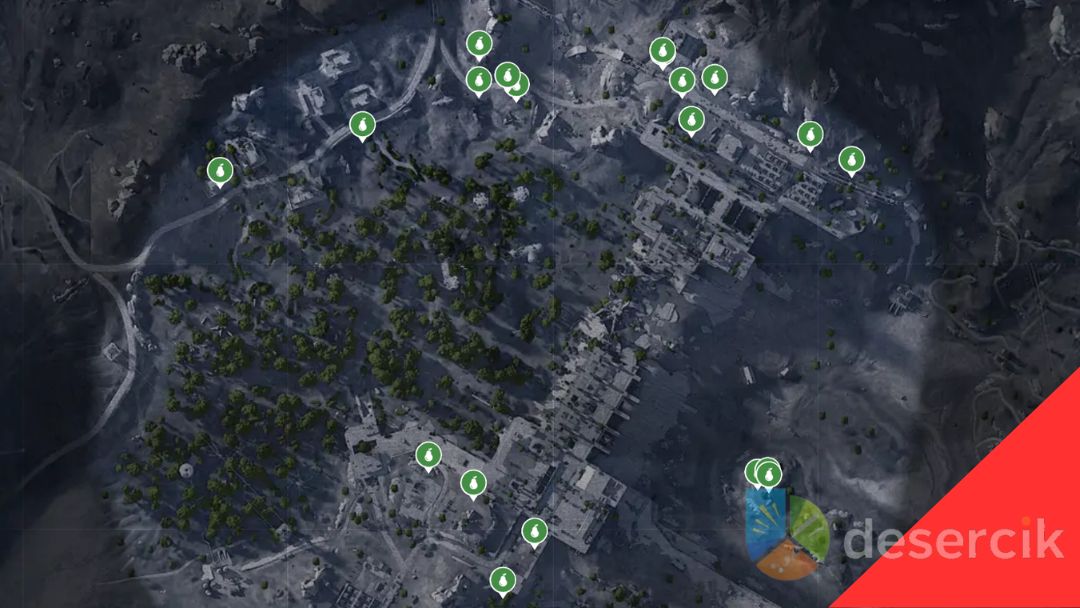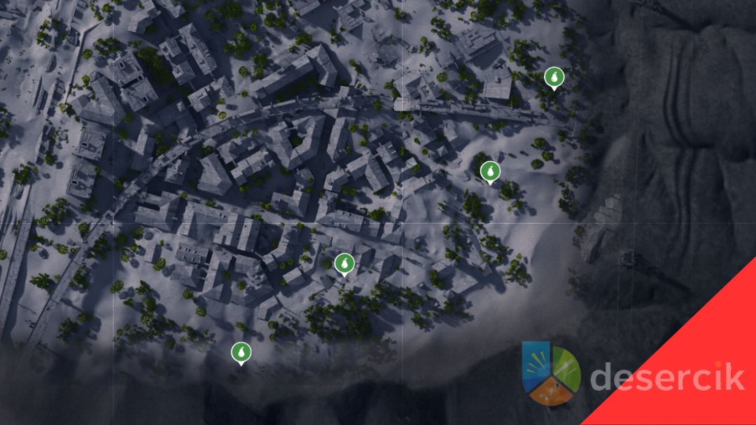 Pogrzebane Miasto – Podobnie jak na mapie Pole Bitwy na Terenie Zapory, większość kaktusów znajdziesz na obrzeżach mapy, jednak nie wszystkie będą dojrzałe. Najlepiej szukać owoców w rejonie Dune’s End w północno-wschodnim rogu mapy, gdzie masz największą szansę na zebranie opuncji.