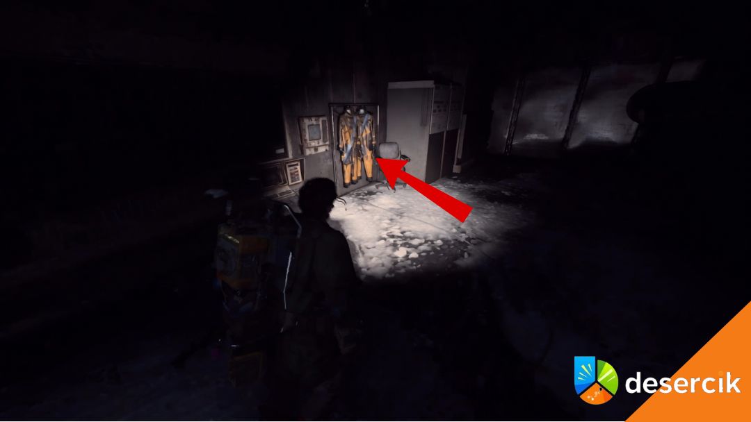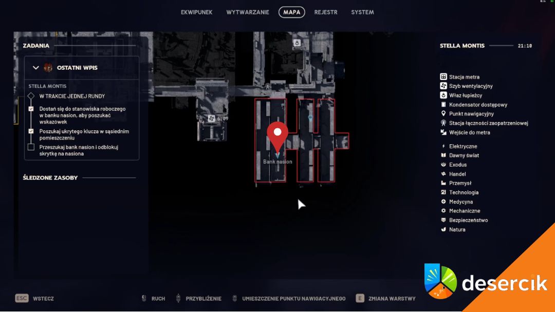 Kolejnym krokiem jest wejście do przyległego pokoju po lewej stronie, kilka kroków dalej w korytarzu. Zauważysz tam wieszak z pomarańczowymi kombinezonami. Trzeba go dokładnie przeszukać, bo właśnie tam znajdziesz Klucz do skrzynki w banku nasion, który upadnie na podłogę. Podnieś klucz, bo będzie ci niezbędny w kolejnych krokach.