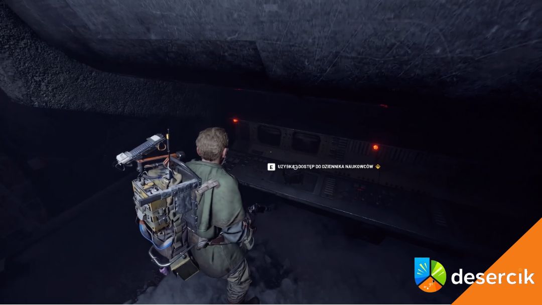 Tuż przy wejściu do Banku Nasion idź po krótkich metalowych schodach na wschód. Po lewej stronie zobaczysz niepozorny komputerowy terminal – jest dosłownie na szczycie schodów, kilka kroków od samej skrytki, więc łatwo go przeoczyć, jeśli się nie rozejrzysz. Wejdź w interakcję z terminalem, aby uzyskać dostęp do dziennika badacza i rozpocząć swoją misję.