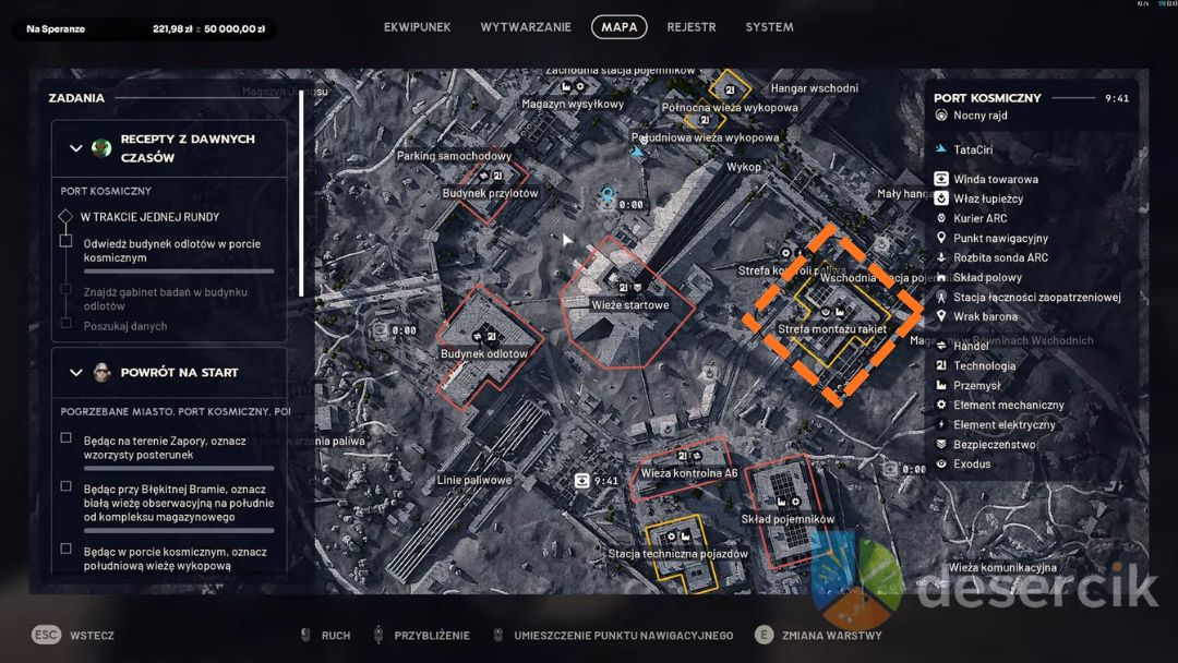 Poniewa偶 Paliwo Syntetyczne nale偶y do kategorii 艂up贸w Exodus, najlepiej kierowa膰 si臋 do miejsc oznaczonych t膮 ikon膮. Jednym z najbardziej op艂acalnych spot贸w jest Strefa Monta偶u Rakiet聽na mapie Port Kosmiczny. To obszar ulokowany po wschodniej stronie, wi臋c zale偶nie od punktu startowego czasem trzeba zrobi膰 solidny spacer.