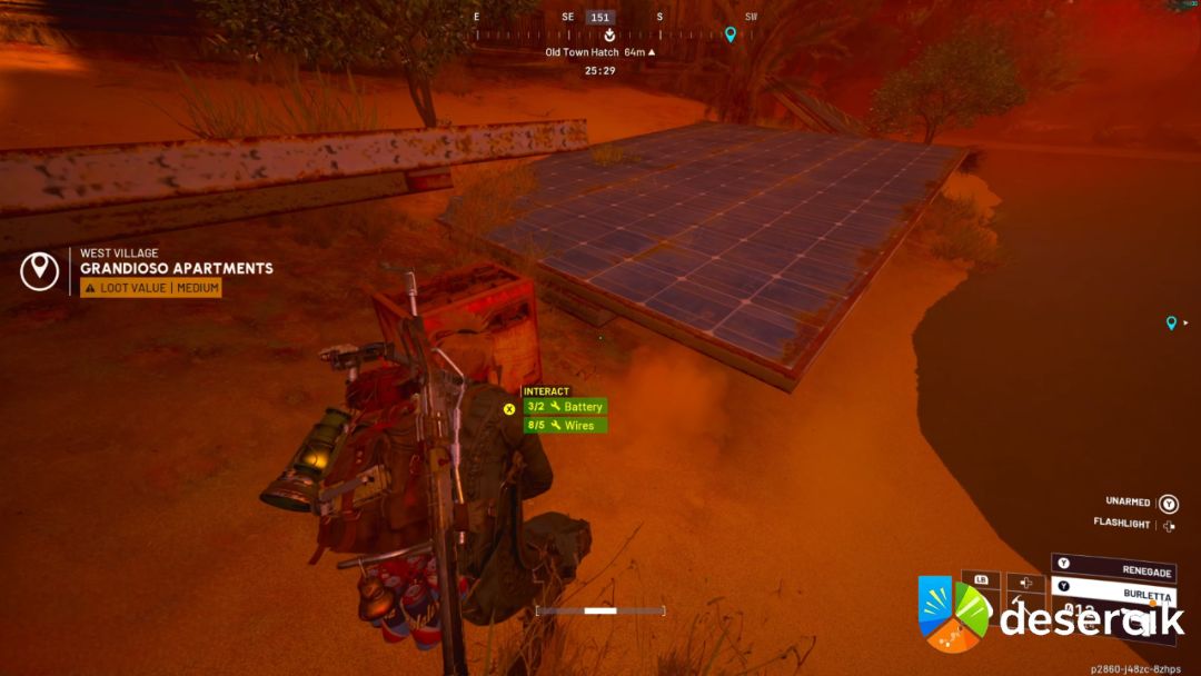 Gdy ju偶 zdob臋dziesz wszystkie potrzebne przedmioty, udaj si臋 na zachodni膮 stron臋 mapy, w okolice Apartamenty Grandioso. Tam znajdziesz kilka paneli s艂onecznych, a przy jednym z nich b臋dzie ma艂y 偶贸艂ty generator.