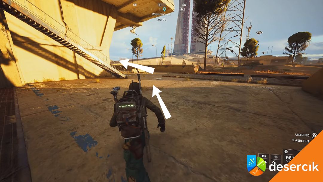 Trzecia lokalizacja to wyprawa do Portu Kosmicznego. Twoim celem jest Południowa wieża wykopowa, która znajduje się w górnej części mapy. Konstrukcja jest bardzo wysoka, więc trudno ją przeoczyć, ale interakcja nie znajduje się na górze – musisz obejrzeć południowo-zachodnią podporę.