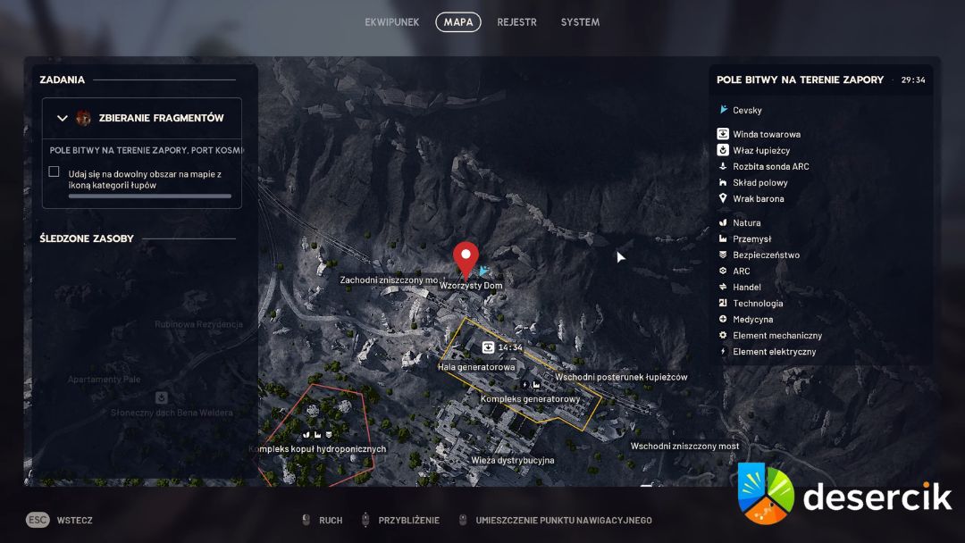 Trzecia lokalizacja to wyprawa do Portu Kosmicznego. Twoim celem jest Po艂udniowa wie偶a wykopowa, kt贸ra znajduje si臋 w g贸rnej cz臋艣ci mapy. Konstrukcja jest bardzo wysoka, wi臋c trudno j膮 przeoczy膰, ale interakcja nie znajduje si臋 na g贸rze – musisz obejrze膰 po艂udniowo-zachodni膮 podpor臋.