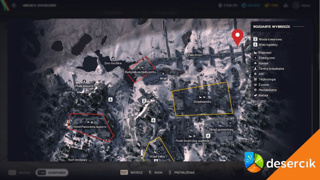 Aby znaleźć pęknięcia na falochronie na Rozdartym wybrzeżu, szukaj na mapie punktu o nazwie Falochron.