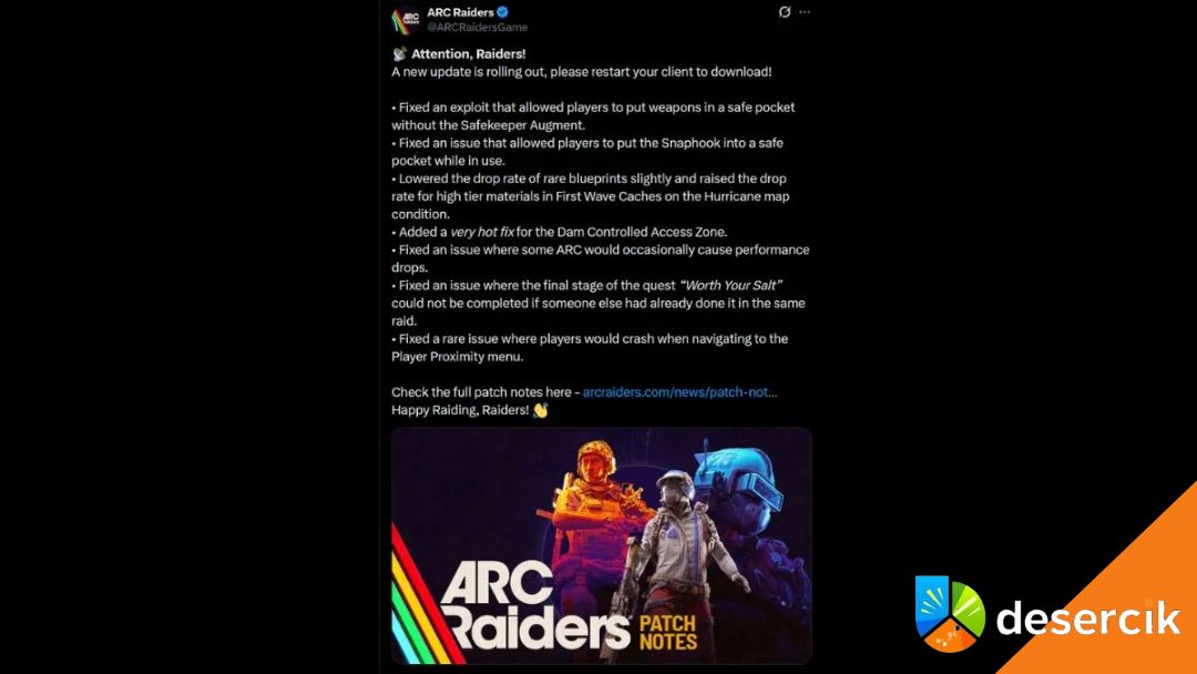 Arc Raiders Shrouded Sky: hotfix naprawia irytujące bugi i questy