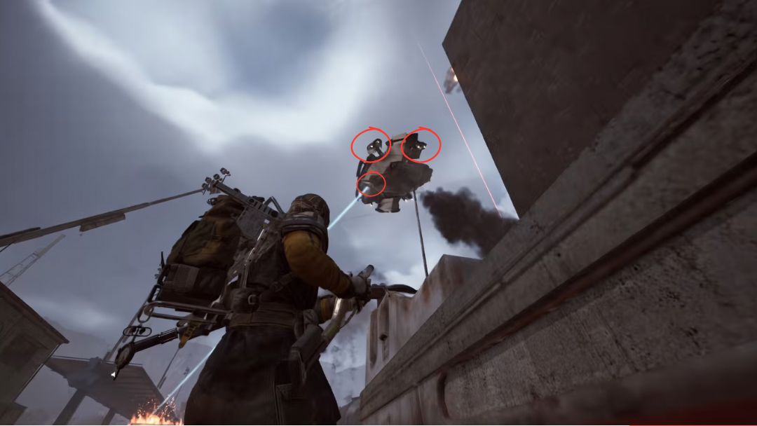 Spopielacz nie ma odsłoniętych silników jak Rakietowiec, więc nie zestrzelisz go tak łatwo. Zamiast tego celuj w małe rotory, podobne do tych u Kapusia. Najlepiej użyć do tego broni typu Anvil albo Ferro.