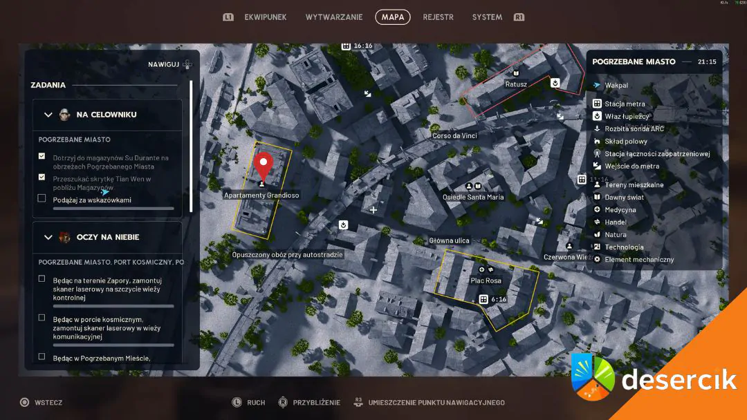 Jeśli Wioska akurat nie podeszła albo nie chcesz tam wracać kolejny raz, to Apartamenty Grandioso są solidną alternatywą. Obszar jest mniejszy, ale południowa część Pogrzebanego Miasta mocno stawia na zabudowę mieszkalną, więc loot się zgadza.