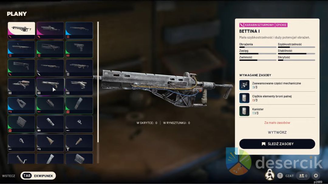 Problem polega na tym, że materiały rusznikarskie są zróżnicowane: trochę elektroniki, trochę części, czasem jakieś rzadkie, zardzewiałe komponenty. Najtrudniej zdobyć zardzewiałe tryby i zardzewiałe narzędzia, bo wypadają tylko z określonych skrzynek i najlepiej farmić je podczas nocnych rajdów. Im szybciej wbijesz poziom 3, tym szybciej Twoja broń przestaje być „podstawowa”.