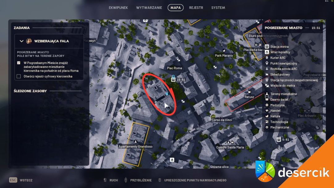 Pierwszy cel brzmi prosto: znajdź zabarykadowane mieszkanie brygadzisty. Budynek znajduje się bezpośrednio na północ od Apartamentów Grandioso na mapie Pogrzebane Miasto.