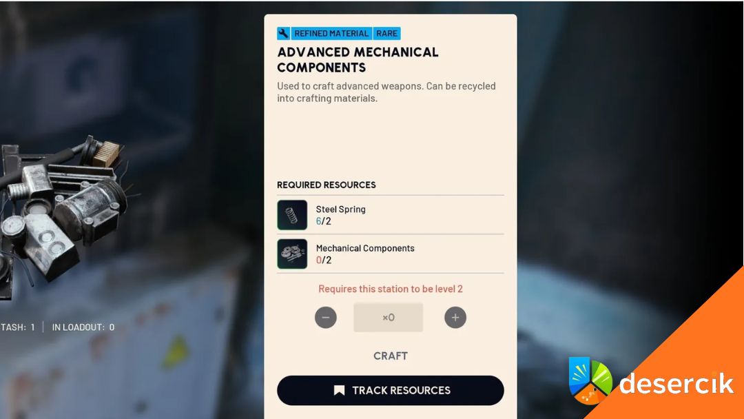 Po osiągnięciu poziomu 2 Stacja usprawnień, możesz połączyć Części Mechaniczne z Sprężynami Stalowymi, by stworzyć Zaawansowane Części Mechaniczne.